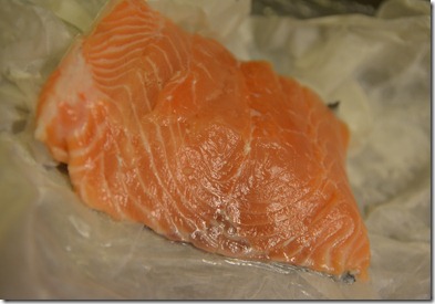 至于那三文鱼,我们把它分成两半,一半作晚餐,另一半作明天的早餐